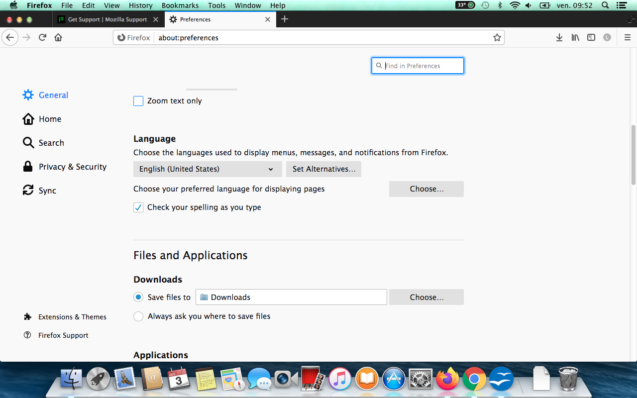 Sur un MacBook Pro sous OS X 10.9.5 j'ai chargé firefox 78.0.2 64Bit et il est impossible de changer le language pour le mettre en francais. Pouvez-vous m'aider, merci