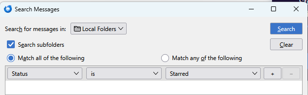 How can I search ALL my accounts and ALL their multiple folders for Starred messages in one search?