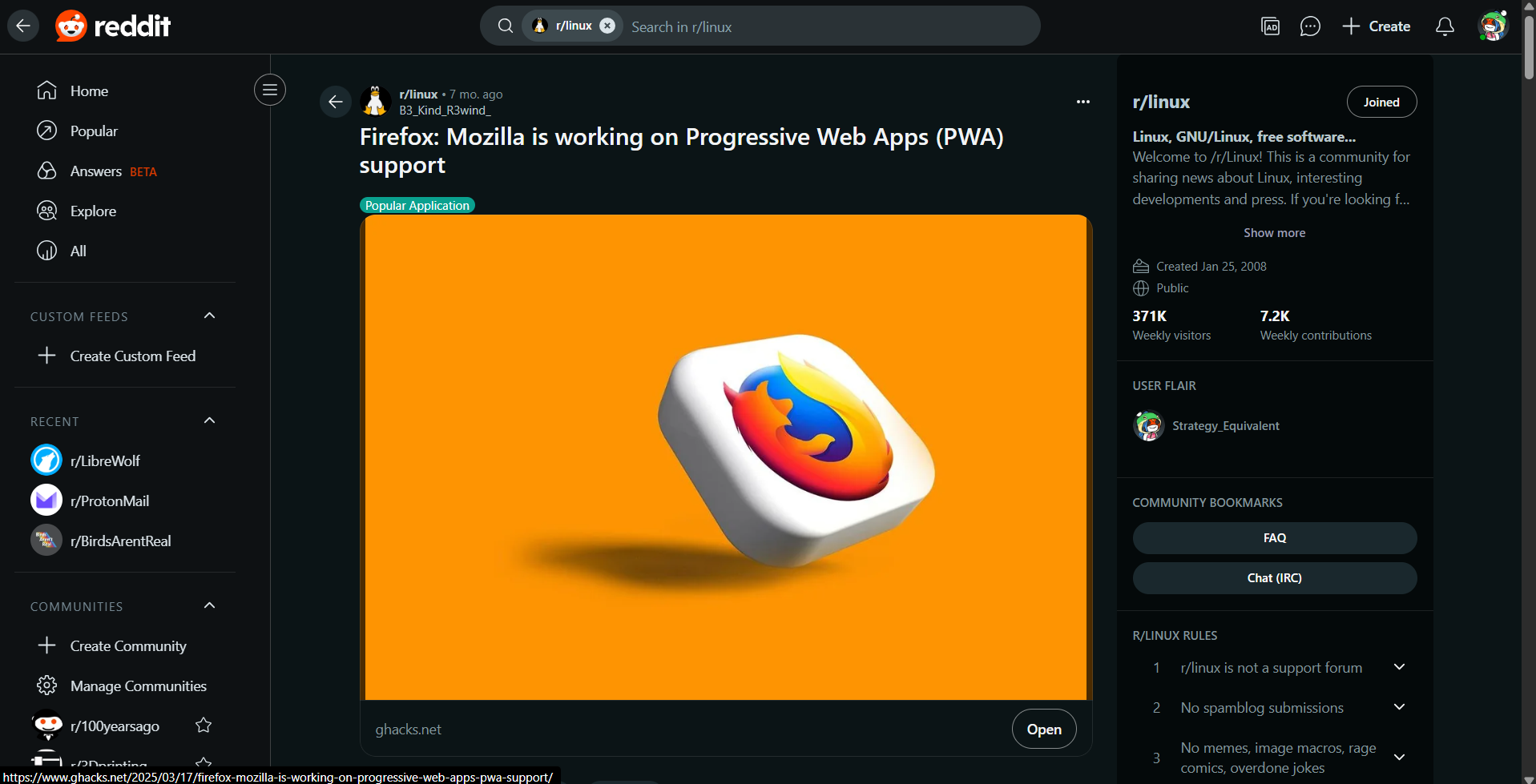 When will Firefox desktop browsers start getting the Progressive Web Apps to be installed on Desktops? Please help.