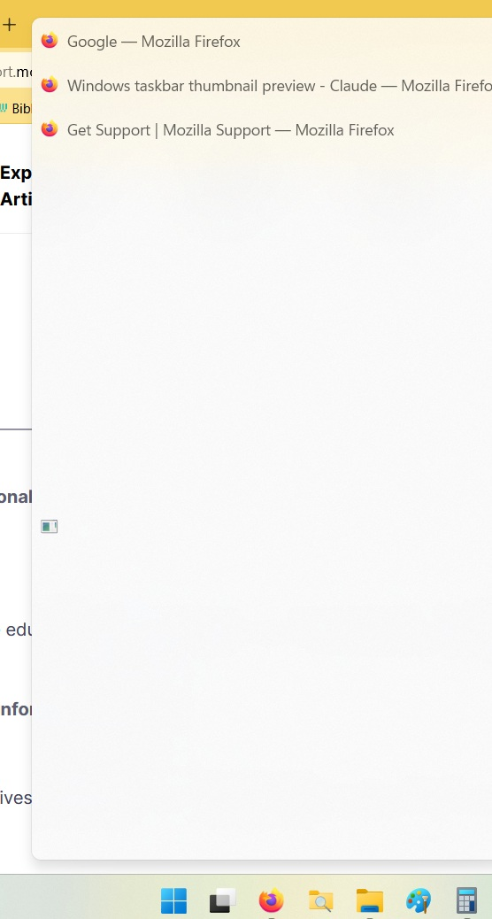 Long list of empty entries in the windows 11 taskbar thumbnail preview