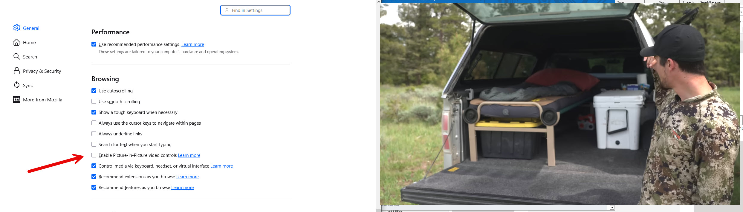The disabled feature still has a picture in the picture when unchecked. How do I stop picture-in-picture for videos playing in Firefox? Yes, went into settings and unchecked picture in picture, yes, the problem still exists.