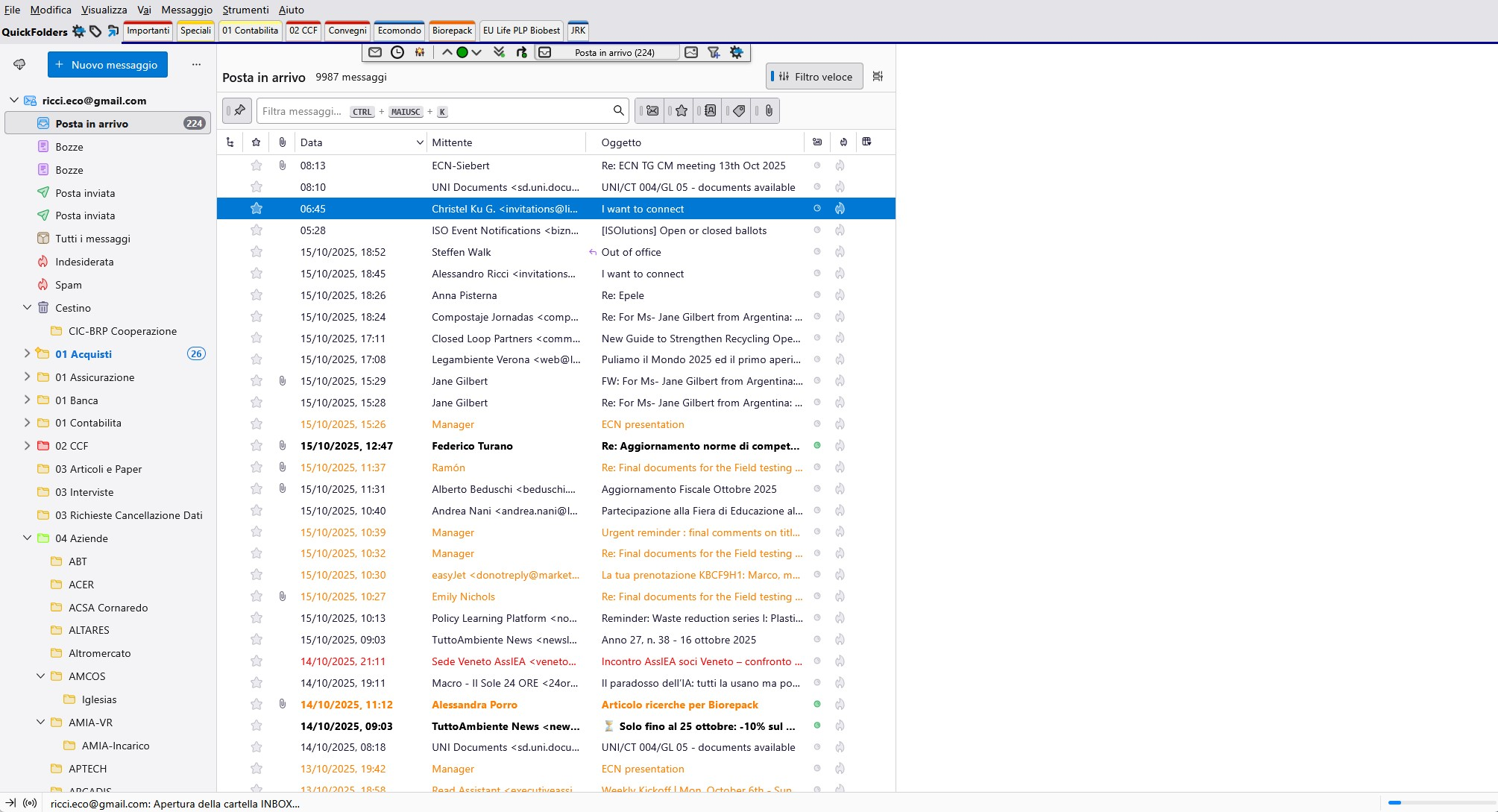 Since today with the new version installed (Thunderbird 140.4.0esr) I basically canot open the emails in the inbox and any other folders; I can see the list of emails, but when I click on a single email they are "white", without any text shown. The email box is configured in IMAP