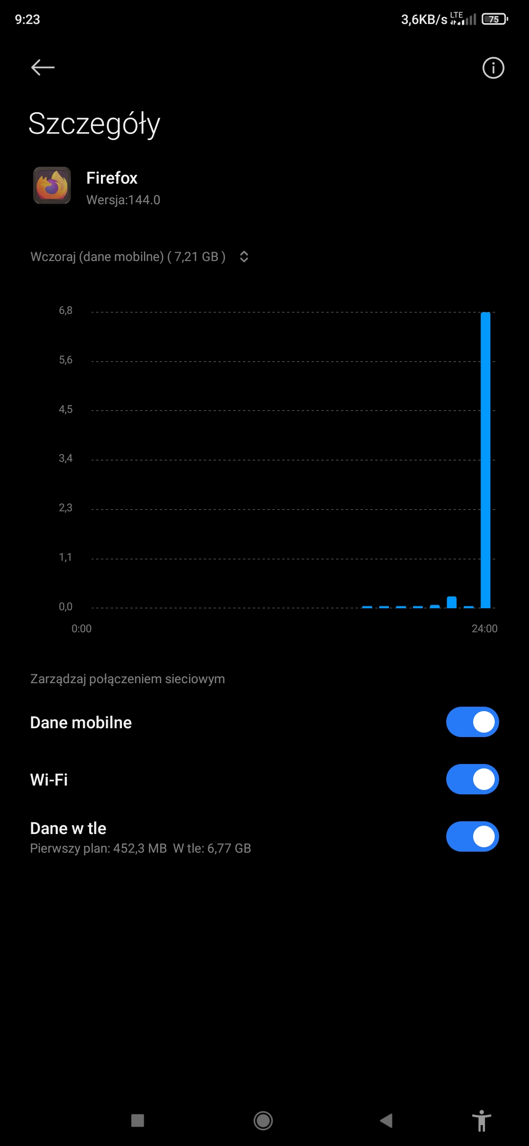 Witam, chciałbym zgłosić bardzo nietypowy problem z przeglądarką Firefox na Androidzie. W nocy z 18 na 19 października (około 23:00–6:00) przeglądarka Firefox zużyła 49,6 GB danych komórkowych, mimo że telefon był zablokowany, a ja spałem.