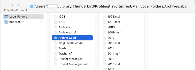 Thanks for your screen shots. The one in the middle is a bit confusing since at the top it doesn't indicate the path to and the name of the parent folder of archive, archive.sbd, ... etc . To illustrate what I mean a join a screen shot of the path to my Local Folders in the profile. It's on a Mac but you will understand the concept.