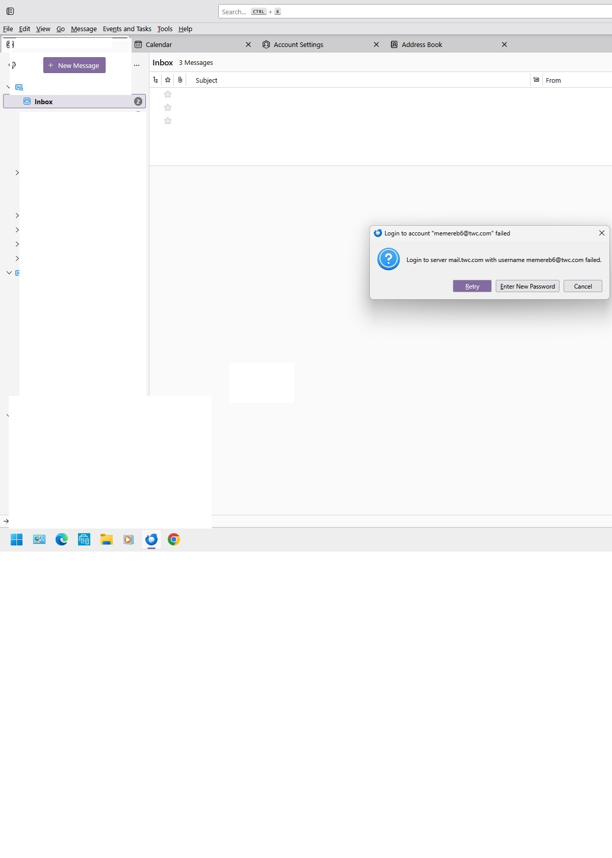 Hello, I received an email from Spectrum (.TWC) that I needed to change my password by Nov. 11th. I did change it last evening. Now today I cannot receive my email via Mozilla Thunderbird, I receive the pop up to Enter the Password when I open it. Can you help me with this. Thank you for your time and efforts.