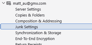 I tried to answer before but something went wrong. Anyway, Its kinda interesting. In my thunderbird there 'spam' is not even mentioned one time. I have been through all things in not only account settings but others as well. For some reason, now, its even stranger. Right now, for instance, the only thing that the option to press to make it junk is one that I have been trying to make junk for a long time. A while ago the junk option was greyed out - on everything! I have no idea what to do. I have updated, etc. and that did nothing.