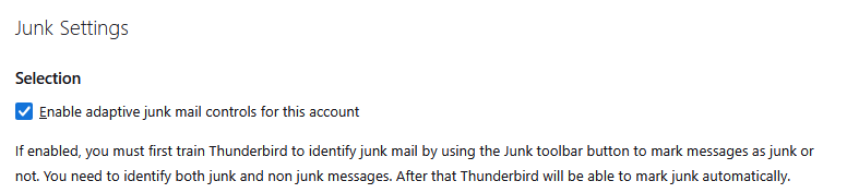 But this is all covered in the user support document. https://support.mozilla.org/en-US/kb/thunderbird-and-junk-spam-messages
