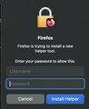 Last screenshot is what happens when I try to launch Firefox and enter the password when the install helper prompt pops up