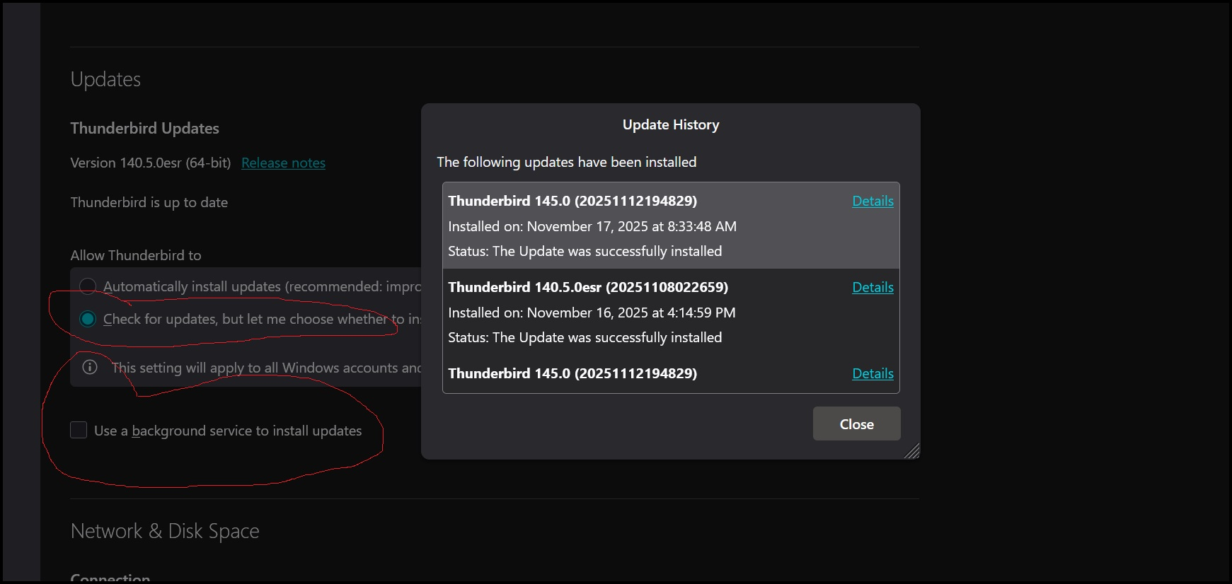 But I think I have noticed a security flaw (see attached). If you check the box for TB to check for updates but to notify you for permission BUT leave the "use background service to install it" checked, the updates still get installed.