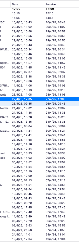 All messages—whether imported or newly received—both in the Inbox and in archives are showing the month as April (i.e., xx/4/xx). This issue also appears in the email body when replying or forwarding messages. Please note that the day and year are correct, only the month appears incorrectly as “4” (April)on all messages.