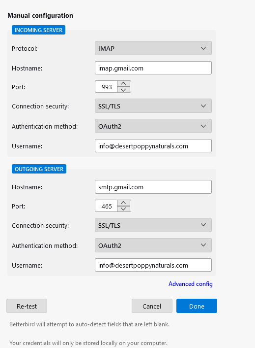 Been using thunderbird for years, stopped getting new messages. Removed/deleted the accounts and tried to setup again and get error unable to login at server, probably wrong configuration, username or password. username and password are entered correctly, changed them just to verify, using default settings and appear to match what their supposed to be as documented. Gmail accounts... Any help appreciated...