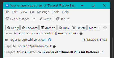 I ordered some batteries from Amazon on 15/12/2024, 17:23. I presume they arrived, and I subsequently deleted the email. It has suddenly reappeared in my Unified inbox today, but not in any of the inboxes of the Unified Folders.