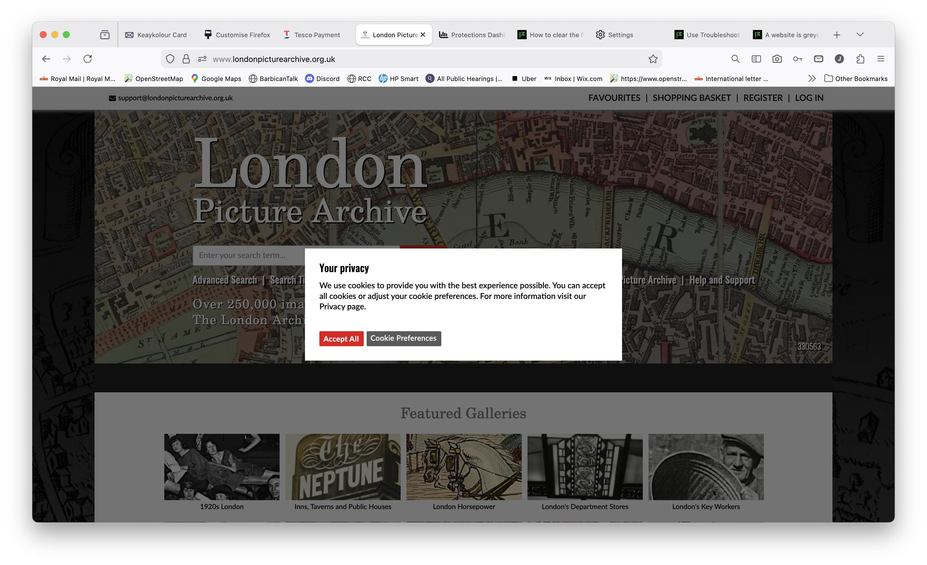 Website: https://www.londonpicturearchive.org.uk/view-item?i=119810&WINID=1764158938344 (for example) On Safari I see there is a message overlay from the website saying "press the command key to zoom the image". On Firefox, this message is not displayed, and the website is greyed out.
