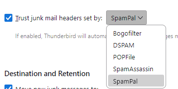 Spampal and Popfile are software products that must be installed on your PC. Spamassasin is sometimes provided by email providers. That thunderbird feature is of no use unless you have the other products.