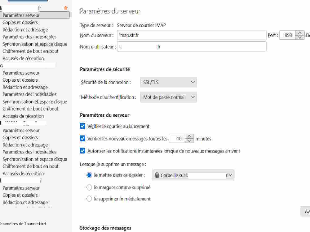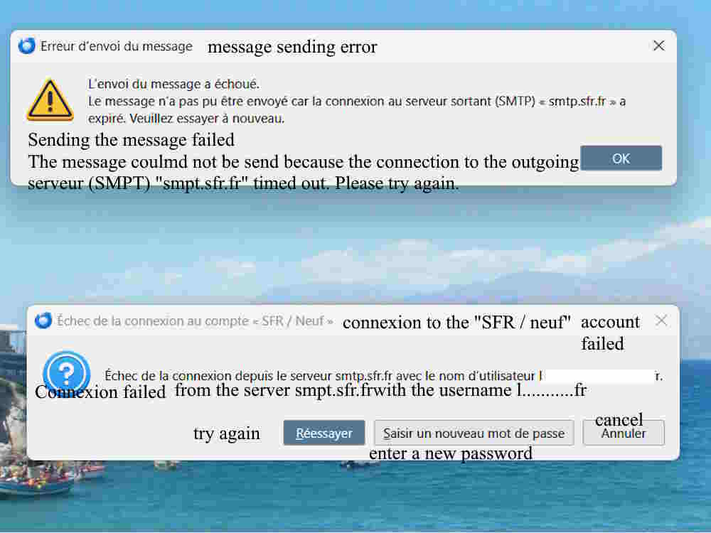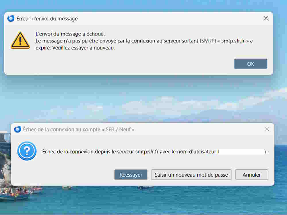Failed to log in to the "SFR/ Neuf" account ? Failed to connect from smtp.sfr.fr server with user name I T.
