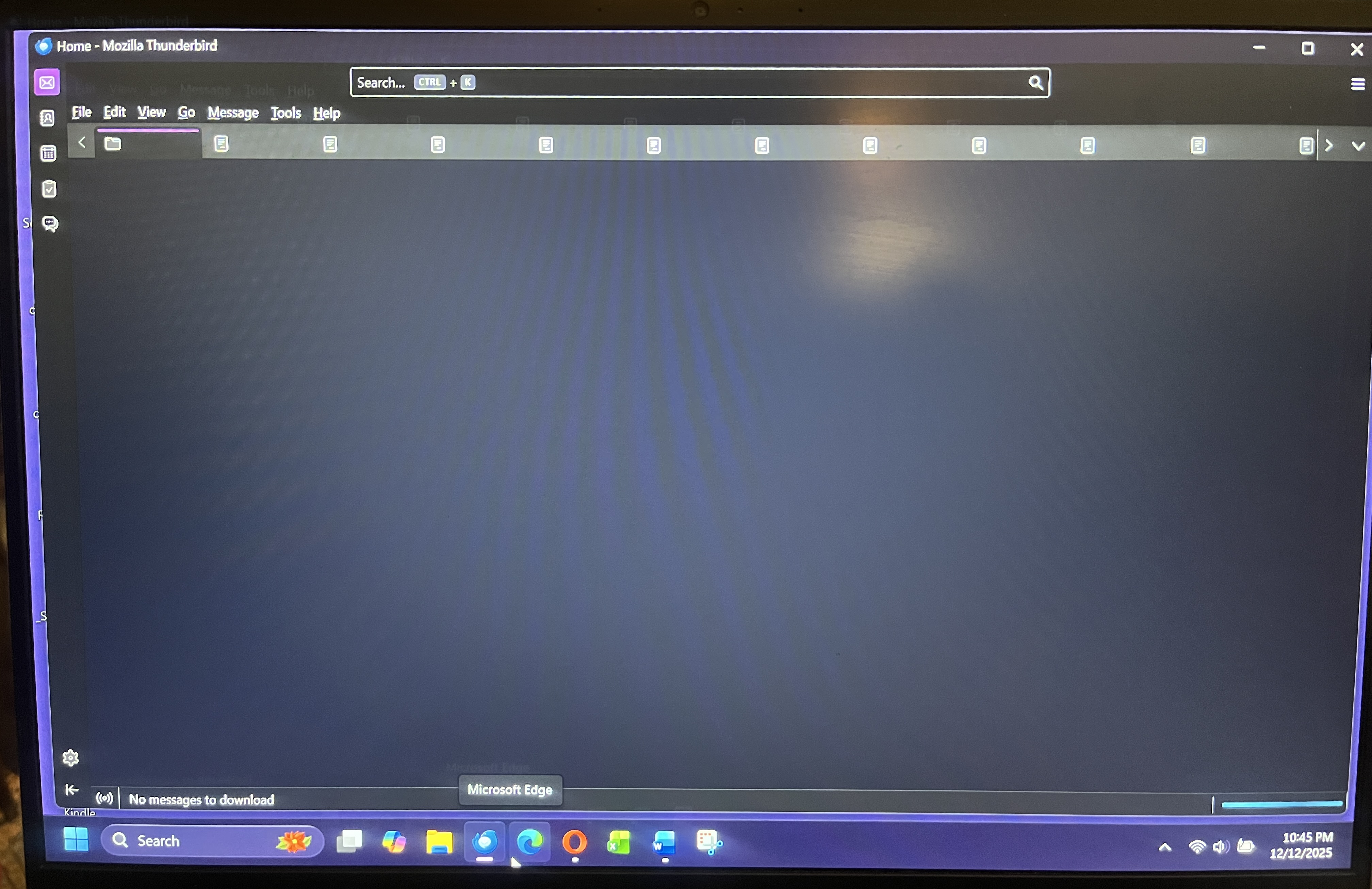 Had to try 3 times-in and out. I finally could click on Folder Pane. Obviously I’m still having loading issues. I just had to manually get my mail and even that is taking forever. I’m still waiting. Finally getting 39 messages.
