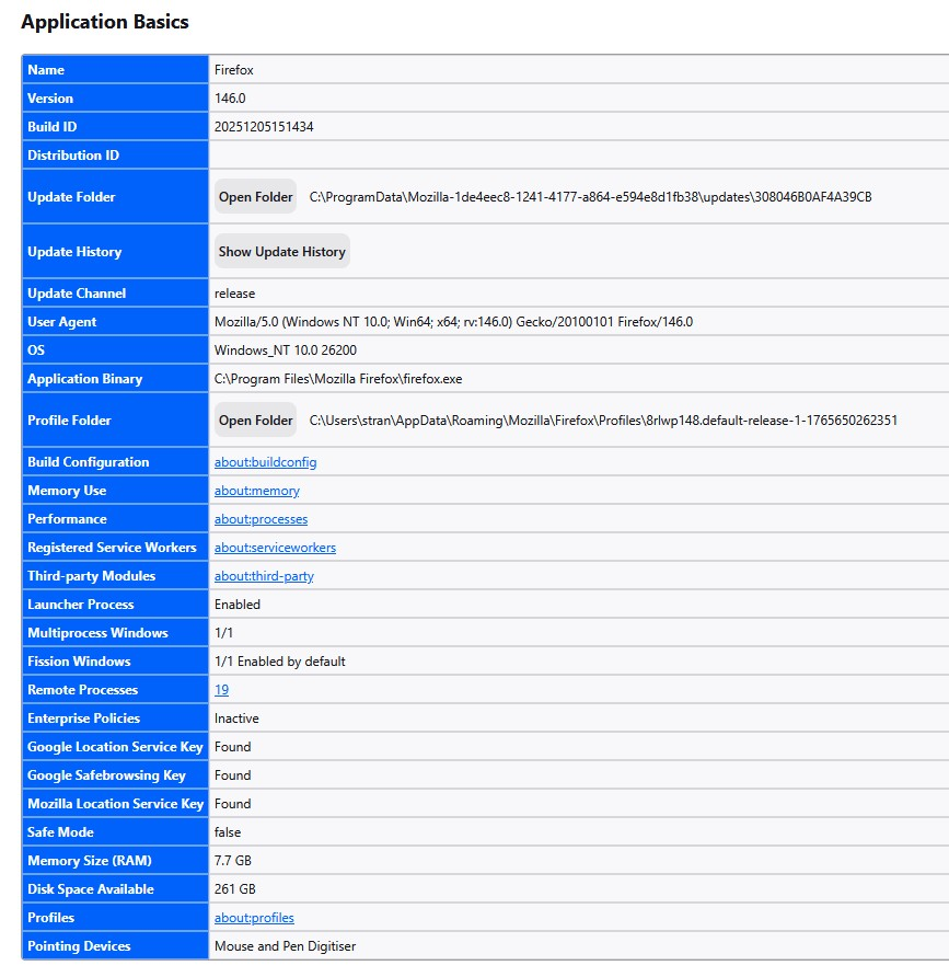 In recent months, performance has dropped sharply and I have been unable to resolve using the advice in Help and seeking guidance. I attach the Troubleshooting Information, and a screen shot of me attempting access my Amazon account - 15 minutes and counting.