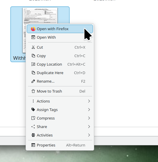 I've set Firefox to open PDFs in the default system application (I'm on Linux, KDE, Firefox 146). With previous versions it worked fine. Now, it won't open the file; instead it shows a popup that I have to click to open the file.