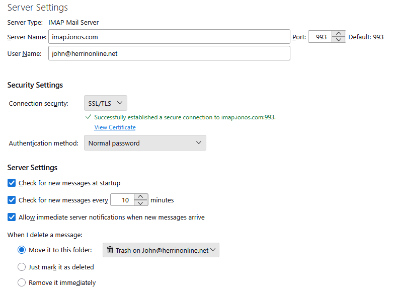 I have checked all the settings for the Ionos webmail server and the Gmail server and they are correct. I have deleted of of the accounts and recreated it but still get the same message.