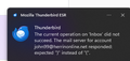 For the last two day when I start Thunderbird I get the message "The current operation on 'Inbox' did not succeed. The email server for account [edited]@herrinonline.net responded: expecting ")" instead of "(".