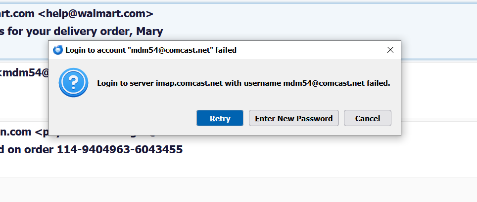 can not add xfinity passwor after changing it to Thunderbird