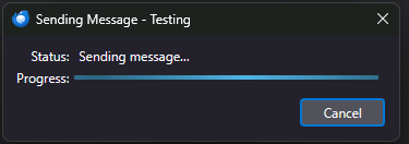 When I try to send an email through the hMailServer account, the message sends correctly: it arrives at the other address quite quickly, and I can see in the server's logs where it connected via SMTP, transmitted the message, received a "250 Queued" response, sent QUIT to log off, and got the "221 goodbye". However the Thunderbird UI itself never progresses past the Sending Message dialog: the status stays at Sending message... and the progress bar is full. I can hit cancel and it prompts to delete the draft, etc., but either way, the message has been successfully sent. This doesn't happen with other accounts, so I'm curious what I need to do to get this to go away or send correctly....