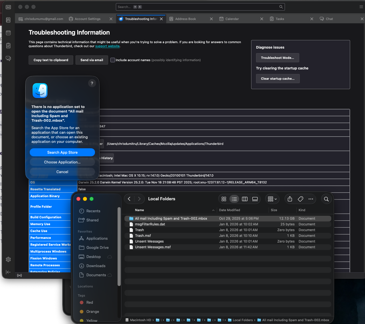 By the way, did you really want your allmail folder? You could have gotten more and smaller mbox files from Google Takeout and separate trash and spam files, so you would not have to import everything into Thunderbird. But your gmail account is no longer active, so you don't have that option now?