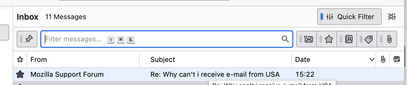 - Check if you have a quick filter or a message filter set that is affecting which messages are in your inbox and visible.