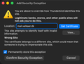 I keep getting a certificate error on my Thunderbird. The certificate refers to an email account i no longer have (Personal domain) and i have removed the account in thunderbird, and also removed previous certificate exceptions.