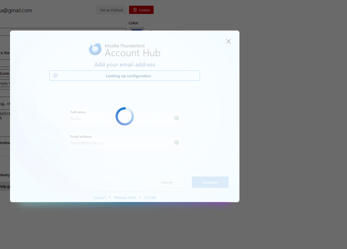 when i went to add a new email account to TB. it just freezes. (same window after 2hrs)