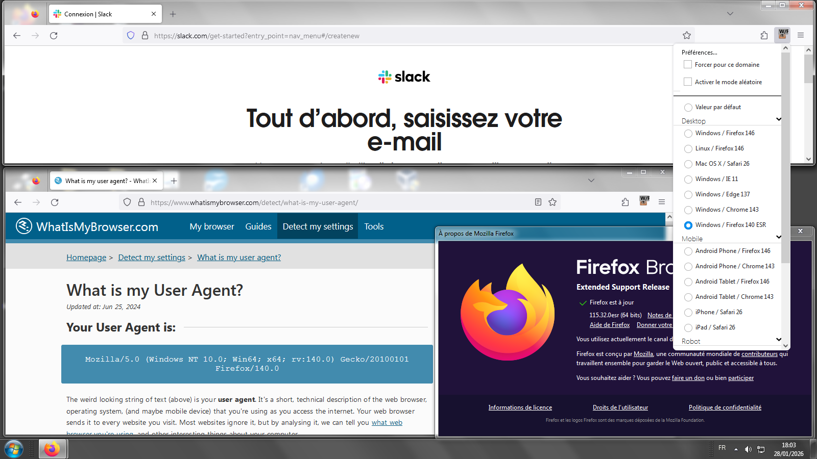 About a test with Windows7. And with User Agent Switcher https://addons.mozilla.org/firefox/addon/uaswitcher