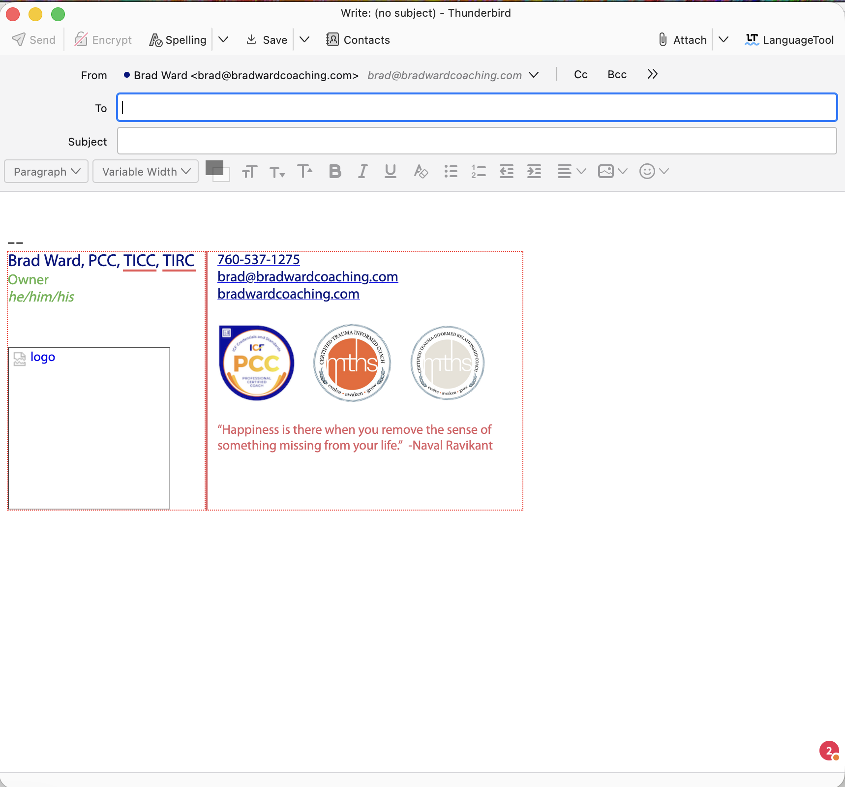 I'm having problems getting my signature to appear in Thunderbird as it does in my soon-to-be former email client. I've attached pics of the signature as it should appear and as it appears when imported to Thunderbird. I can edit the HTML code, but I'm not sure how to correct things like the image not importing when the link is correct and how to get rid of the dotted line border that shows up in Thunderbird when it does not appear in my current email client signature. I attempted to attach my HTML file, but cannot. I can post the code, if that would be beneficial. HELP!
