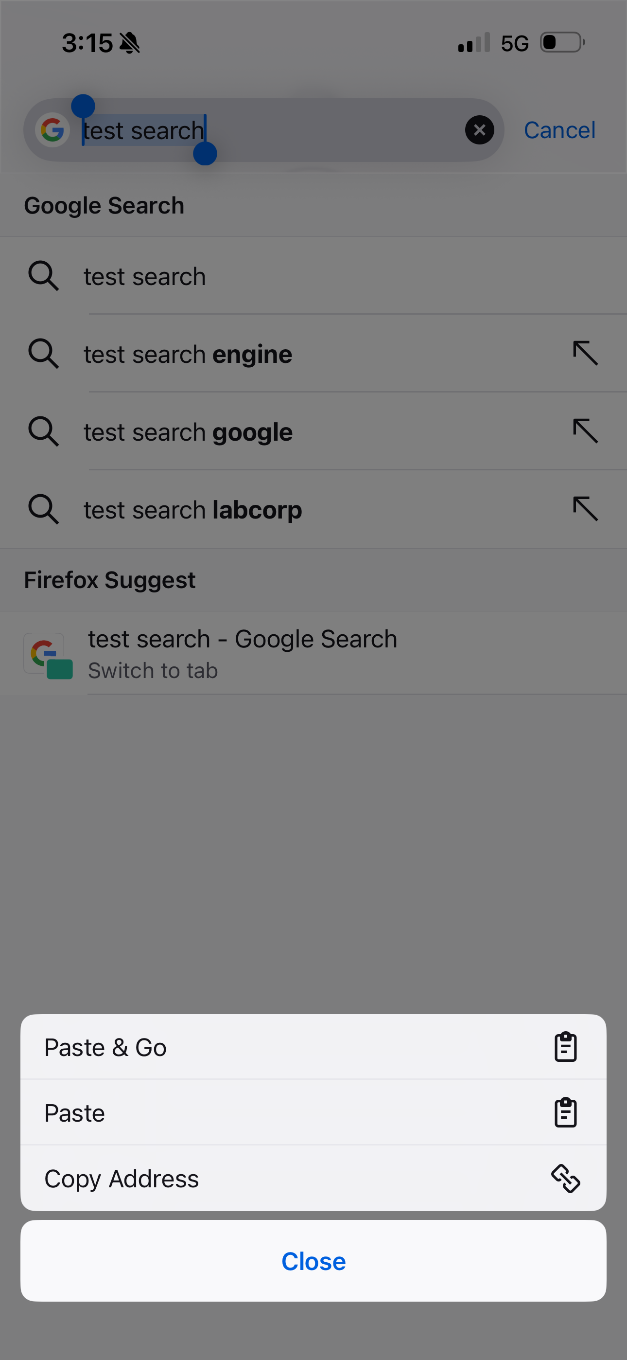 Noticed while doing a google search: after searching, the address bar truncates the displayed URL to just “google.com,” which is very useless in itself - tapping the address bar, however, fills it with the terms of my search. There is no way to view the full URL from here; you have to long press the address bar, after which you need to tap “Copy URL,” then paste it somewhere else, like a Notes app, to view the actual URL that was copied.