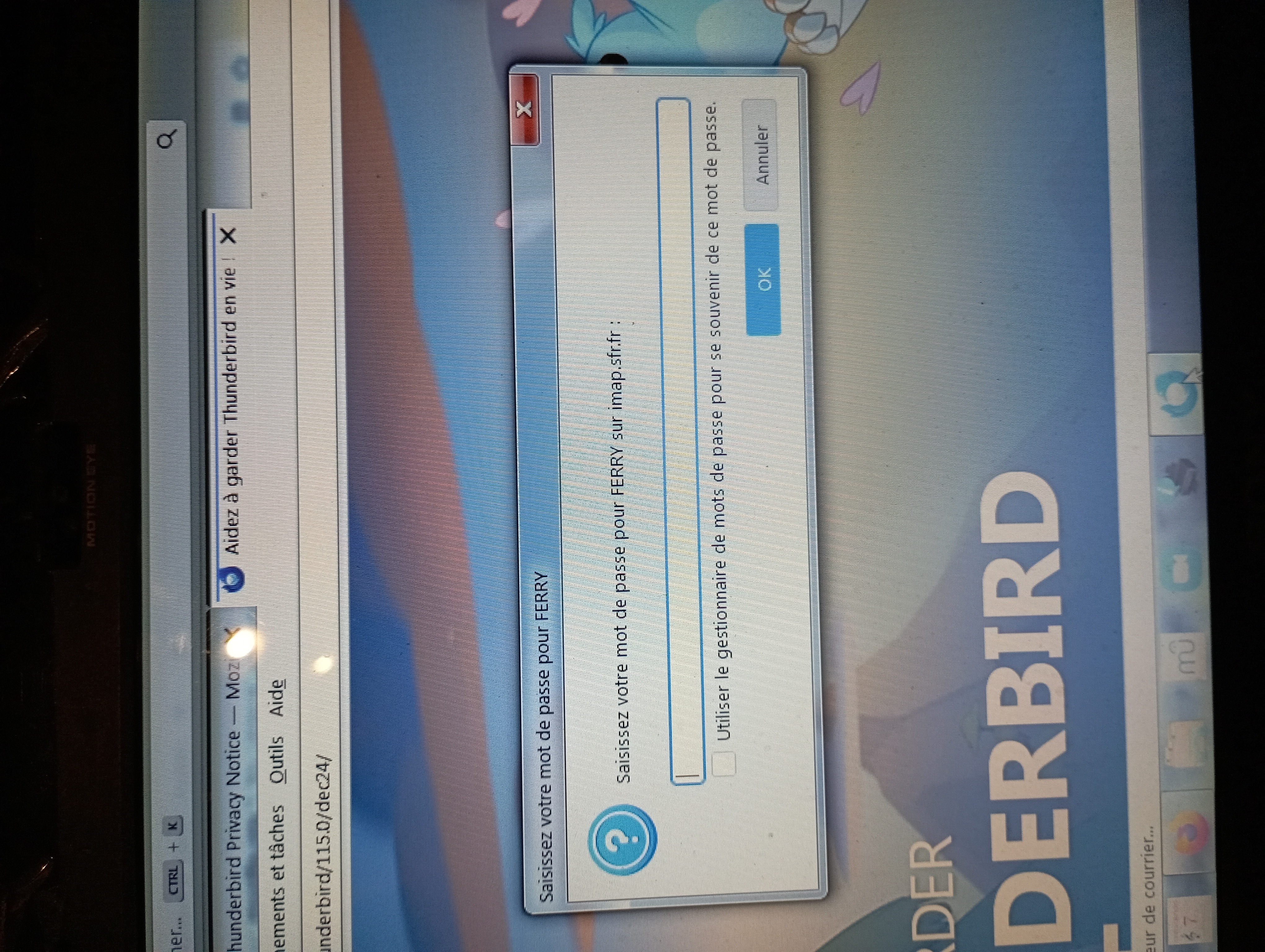 je veux accèder à thunderbird pour changer de fournisseur internet