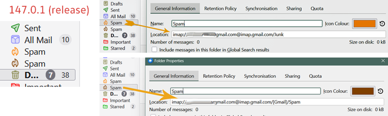 Instead of a "Junk" and a "Spam" fold I get 2 "Spam" folders, but a closer look shows the paths as being correct, what you would expect. The folder will not rename.