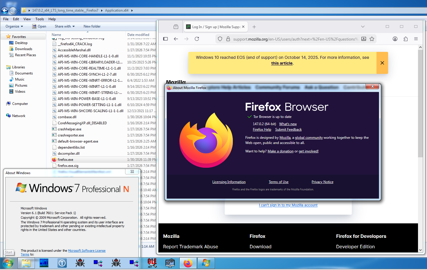 The latest versions of Firefox (and Tor) are still fixed and work successfully in Windows 7, and this is still relevant.