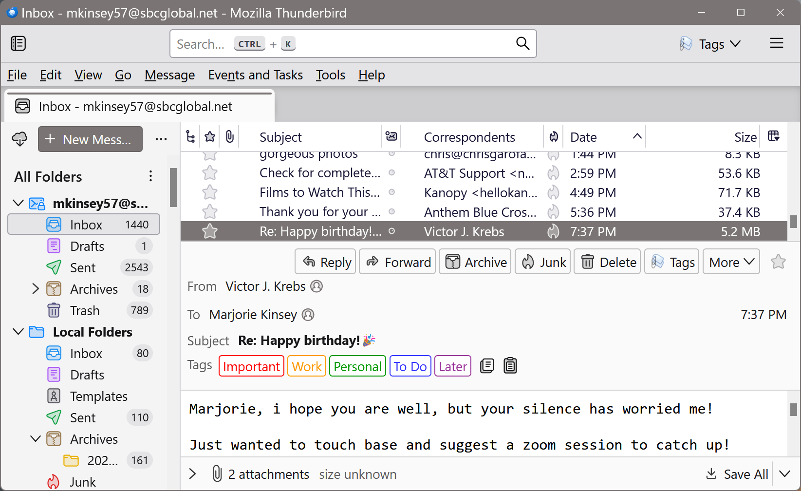 This might also belong under accessibility. Or how to organize the screen? At this point I cannot get some messages because there is no space left for it. This has happened gradually but now its impossible. I will attach a screen shot to show the problem. (I would have a tiny bit more room if I could get rid of that line of tags since they come on a dropdown anyway. Thank you so much,