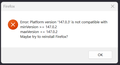 Error: Platform version '147.0.3' is not compatible with minVersion › = 147.0.2 maxVersion < = 147.0.2 Maybe try to reinstall Firefox?