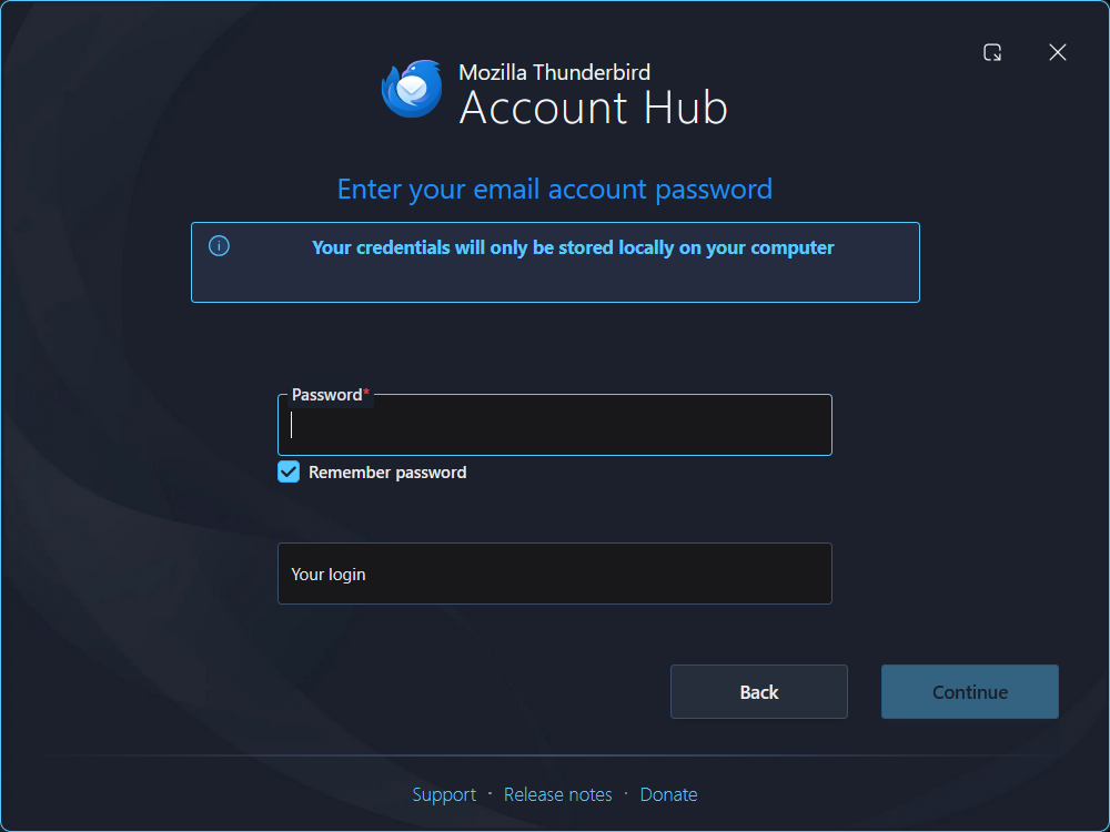 After this, Thunderbird now prompts me to enter a Password and "Your login", whatever that means. My account does not have a password, but the field is mandatory. What am I supposed to do here, exactly?