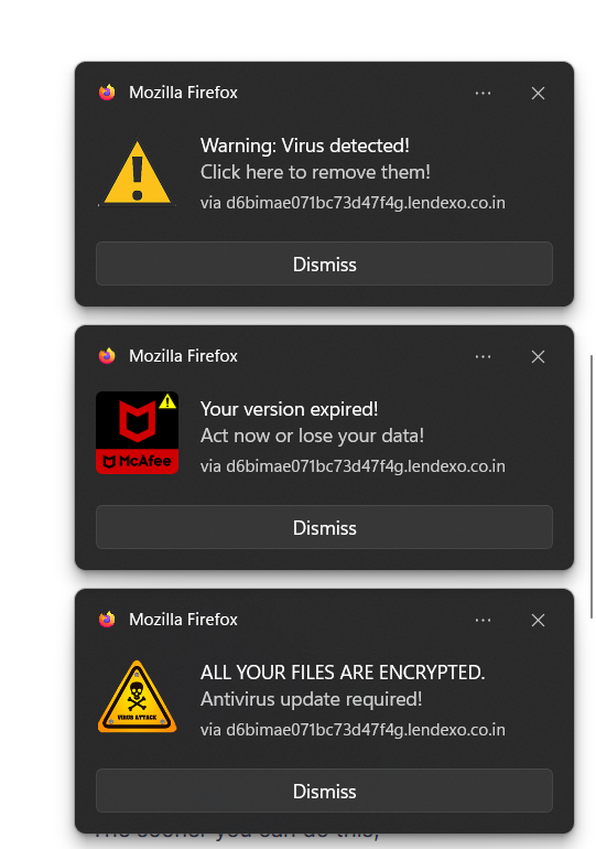 The notifications propourt to be from McAfee, however, are coming from this website.