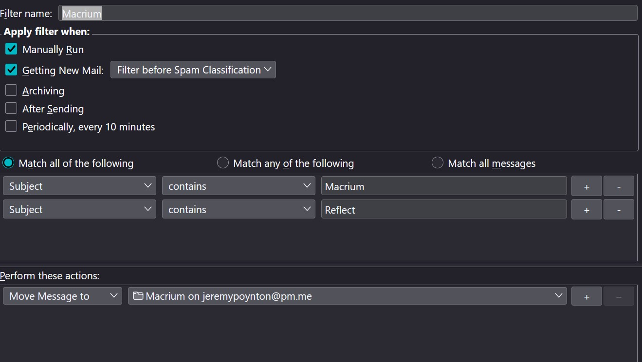 Your filter wants the subject to contain both macrium and reflect. is that the intent?