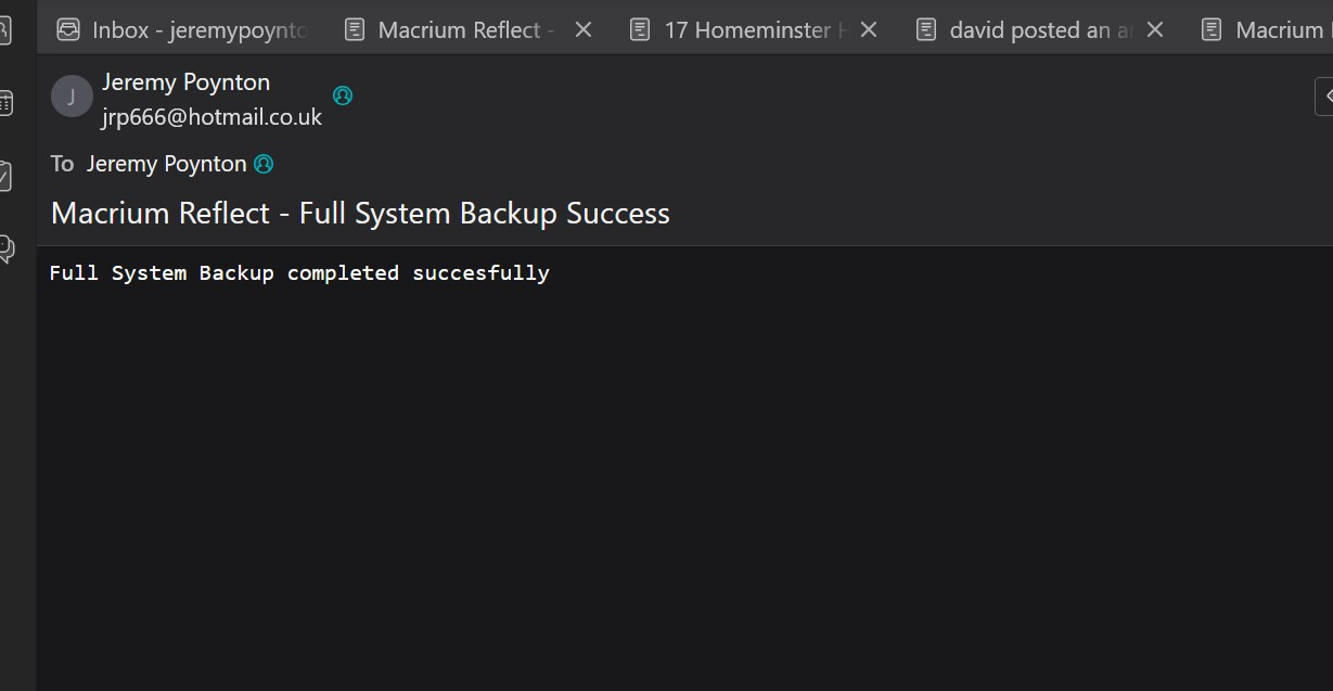 Both are true. But I will try what you suggest. I do get two "Macrium" emails, some from the backup suite, others from Macrium itself re bugs I have reported (ex IT bloke, expert bug detector and fixer!).