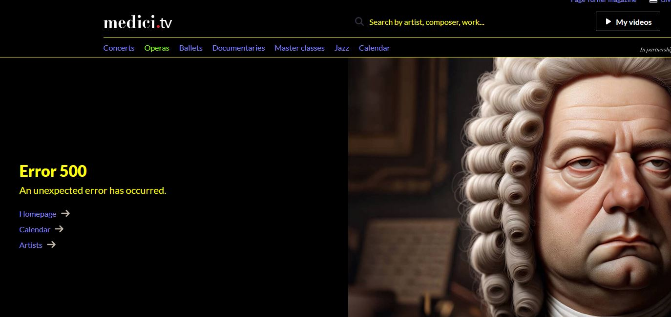 When I get to Medici to watch operas when I click on the opera to watch it I get error 500