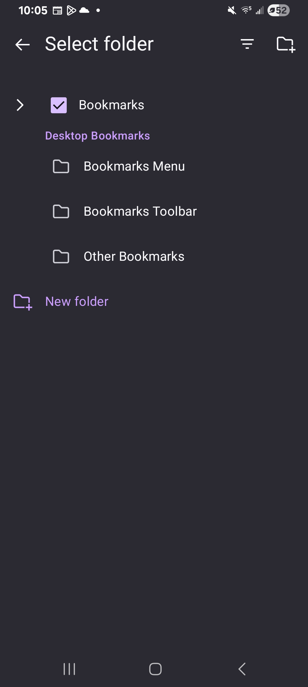 Can't save to specific bookmark folders