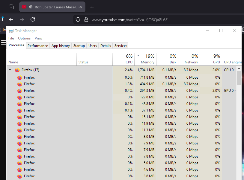 Hi Do you have any add-ons installed in Firefox? I believe that each one will have its own process.