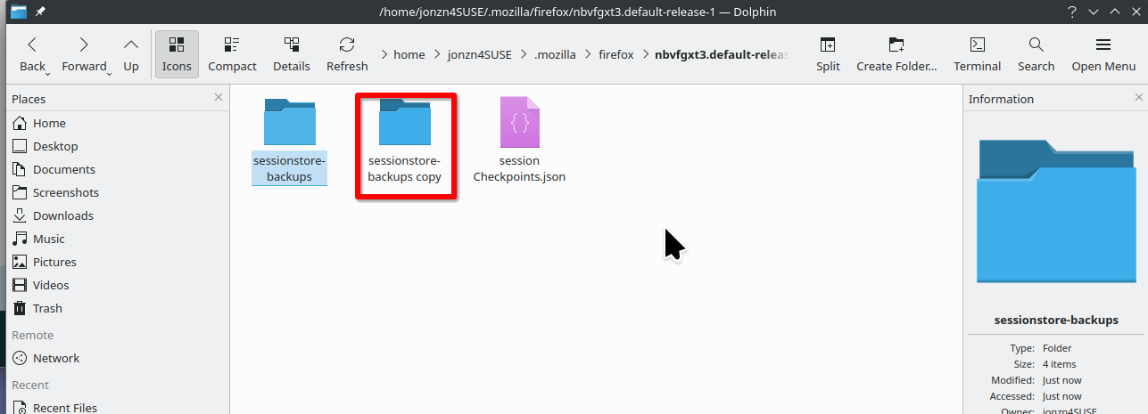 The restore session option fails often which is why I make a backup of the folder. see screenshot Waterfox failed today, but was able to restore it from a few days ago.