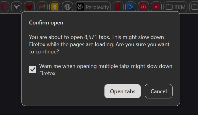 And then the warning "you are about to open X tabs" appears