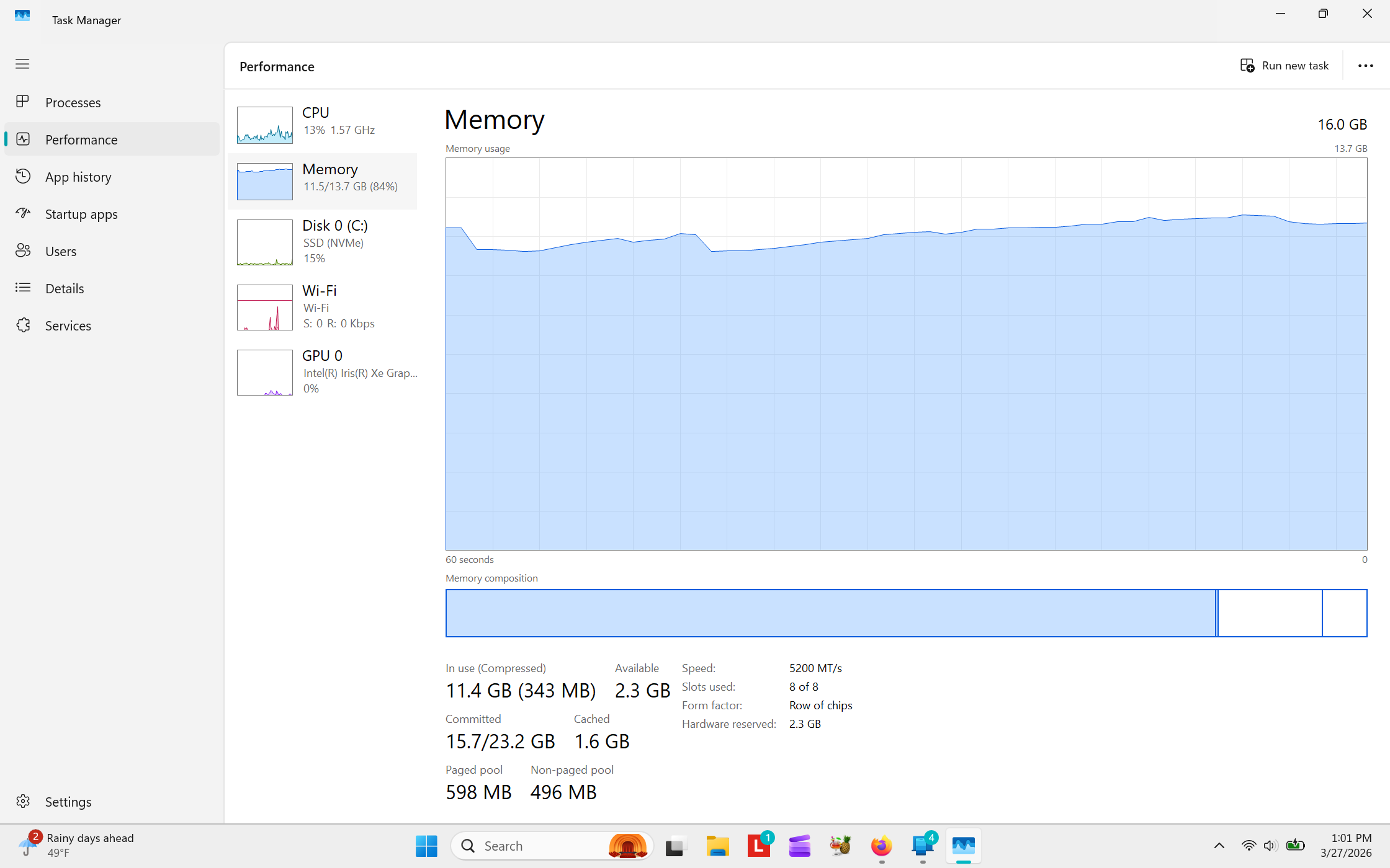 I posted the screenshot...just looked into RAM usage because it didn't seem right and determined it was nothing out of the ordinary for win 11.