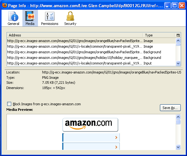 I had a similar problem. I Googled all kinds of stuff and never found an answer. I finally figured out: Tools/Page Info/Media. Near the bottom of the page is a check box for "Block Images from g-ecx.images-amazon.com". Once I unchecked that the page displayed properly.