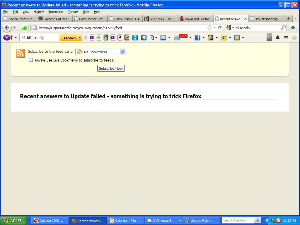 The second screen shot is a new issue. I tried to subscribe to this issue, and Firefox won't let me subscribe for the same reason, ie, "somebody is trying to trick Firefox".